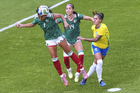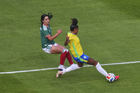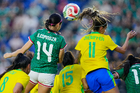 Ciudad de México, 7 de marzo de 2026. Tarciane y Kiana Palacios, durante el partido internacional de preparación, entre la Selección Nacional de México Femenil y la Selección de Brasil Femenil, realizado en el estadio Ciudad de los Deportes. Foto: Imago7/ Etzel Espinosa