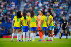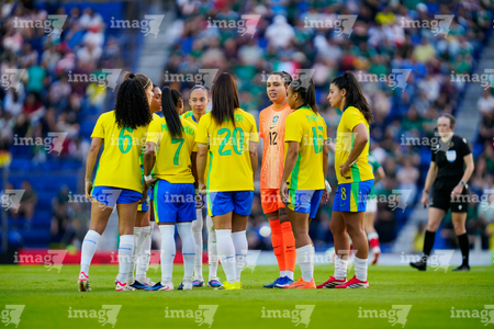 Ciudad de México, 7 de marzo de 2026. Jugadoras de la Selección de Brasil Femenil, durante el partido internacional de preparación, entre la Selección Nacional de México Femenil y la Selección de Brasil Femenil, realizado en el estadio Ciudad de los Deportes. Foto: Imago7/Diego Padilla