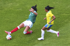Ciudad de México, 7 de marzo de 2026. Reyna Reyes, resultó amonestada, durante el partido internacional de preparación, entre la Selección Nacional de México Femenil y la Selección de Brasil Femenil, realizado en el estadio Ciudad de los Deportes. Foto: Imago7/Diego Padilla