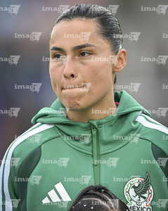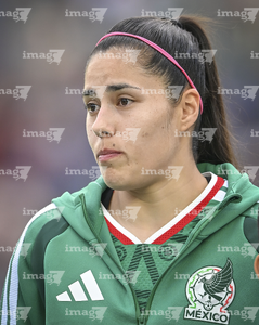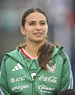 Ciudad de México, 7 de marzo de 2026. Blanca Félix entona el himno nacional mexicano, durante el partido internacional de preparación, entre la Selección Nacional de México Femenil y la Selección de Brasil Femenil, realizado en el estadio Ciudad de los Deportes. Foto: Imago7/Diego Padilla