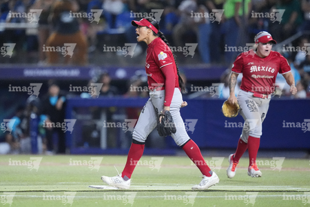 Monterrey, Nuevo León, 18 de marzo de 2025. Guadalupe Piña y Baylee Klingle en festejo, durante el primer juego de la Serie de la Reina 2025 de la Liga Mexicana de Softbol, entre Sultanes de Monterrey Femenil y Diablos Rojos Femenil, celebrado en el estadio Mobil Super. Foto: Imago7/