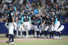 Monterrey, Nuevo León, 18 de marzo de 2025. Jugadoras de Sultanes Femenil en festejo, durante el primer juego de la Serie de la Reina 2025 de la Liga Mexicana de Softbol, entre Sultanes de Monterrey Femenil y Diablos Rojos Femenil, celebrado en el estadio Mobil Super. Foto: Imago7/