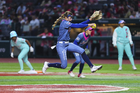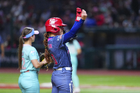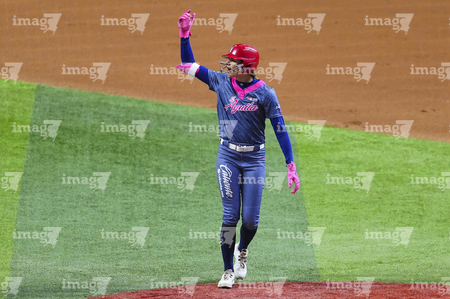 Ciudad de México, 6 de febrero de 2026. Lisa Hope en festejo, durante el segundo juego de la serie de temporada regular de la Liga Mexicana de Softbol, entre Diablos Rojos Softbol Femenil y El Águila de Veracruz, celebrado en el estadio Alfredo Harp Helú. Foto: Imago7/ Manlio Contreras