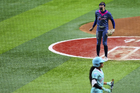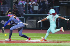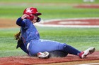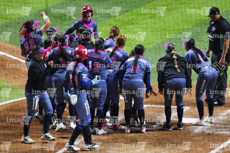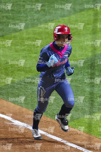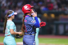 Ciudad de México, 6 de febrero de 2026. Suzy Brookshire en festejo en festejo, durante el segundo juego de la serie de temporada regular de la Liga Mexicana de Softbol, entre Diablos Rojos Softbol Femenil y El Águila de Veracruz, celebrado en el estadio Alfredo Harp Helú. Foto: Imago7/ Manlio Contreras
