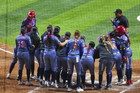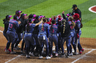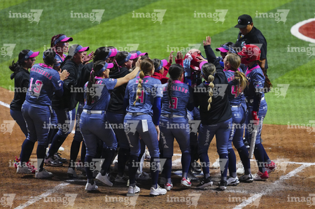 Ciudad de México, 6 de febrero de 2026. Jugadoras del Aguila en festejo, durante el segundo juego de la serie de temporada regular de la Liga Mexicana de Softbol, entre Diablos Rojos Softbol Femenil y El Águila de Veracruz, celebrado en el estadio Alfredo Harp Helú. Foto: Imago7/ Manlio Contreras