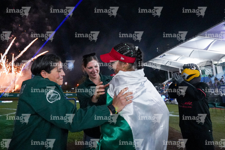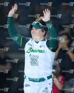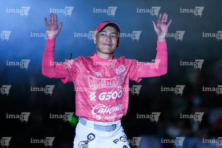 León, Guanajuato, 16 de febrero de 2026. Rachel García en festejo, durante el Home Run Derby del Juego de las Estrellas de la Liga Mexicana de Softbol, celebrado en el estadio Domingo Santana. Foto: Imago7/