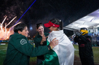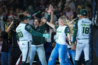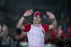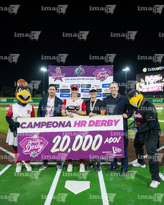 León, Guanajuato, 16 de febrero de 2026. Suka Van Gurp en festejo, durante el Home Run Derby del Juego de las Estrellas de la Liga Mexicana de Softbol, celebrado en el estadio Domingo Santana. Foto: Imago7/