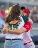 León, Guanajuato, 16 de febrero de 2026. Marta Gasparotto y Erika Piancastelli, durante el Home Run Derby del Juego de las Estrellas de la Liga Mexicana de Softbol, celebrado en el estadio Domingo Santana. Foto: Imago7/