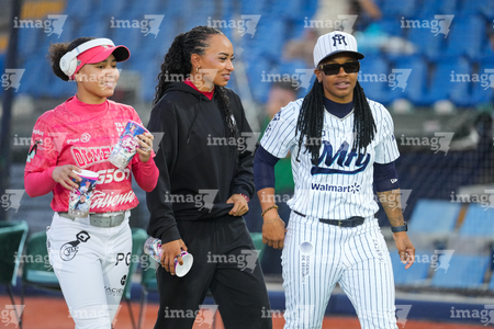 León, Guanajuato, 16 de febrero de 2026. McKenzie Clark, Jazmyn Jackson, Suka Van Gurp, durante el Home Run Derby del Juego de las Estrellas de la Liga Mexicana de Softbol, celebrado en el estadio Domingo Santana. Foto: Imago7/
