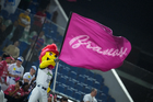 León, Guanajuato, 16 de febrero de 2026. Bravo de León, mascota, durante el Home Run Derby del Juego de las Estrellas de la Liga Mexicana de Softbol, celebrado en el estadio Domingo Santana. Foto: Imago7/