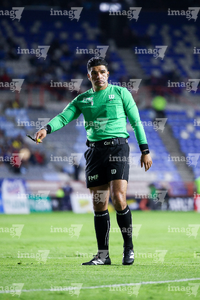 Pachuca, Hidalgo, 8 de marzo de 2025. Maximiliano Quintero Hernández, árbitro central, durante el partido correspondiente a la jornada 11 del torneo Clausura 2025 de la Liga BBVA MX, entre los Tuzos del Pachuca y los Cañoneros del Mazatlán FC, realizado en el estadio Hidalgo. Foto: Imago7/ Elizabeth Hernández