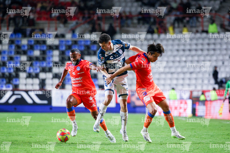 Pachuca, Hidalgo, 8 de marzo de 2025. Jefferson Intriago, Santiago Homenchenko y Bryan Colula, durante el partido correspondiente a la jornada 11 del torneo Clausura 2025 de la Liga BBVA MX, entre los Tuzos del Pachuca y los Cañoneros del Mazatlán FC, realizado en el estadio Hidalgo. Foto: Imago7/ Eloisa Sánchez