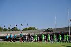 Ciudad de México, 12 de abril de 2025. Protocolo, durante el partido correspondiente a la jornada 15 del torneo Clausura 2025 de la Liga BBVA MX, entre los Pumas de la UNAM y los Bravos de FC Juárez, realizado en el estadio Olímpico Universitario. Foto: Imago7/ Etzel Espinosa