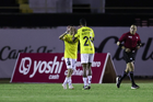 Mérida, Yucatán, 11 de abril de 2025. Luis Calzadilla en festejo de gol, durante el partido correspondiente a la jornada 14 del torneo Clausura 2025 de la Liga BBVA Expansión MX, entre los Venados de Merida y los Coyotes de Tlaxcala, realizado en el estadio Carlos Iturralde Rivero. Foto: Imago7/ Jorge Peña