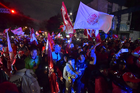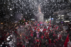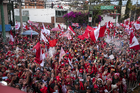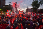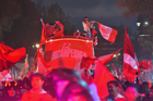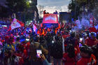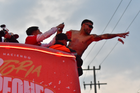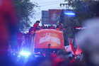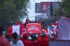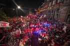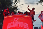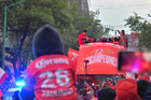 Toluca, Estado de México, 15 de diciembre de 2025. Aspectos durante el desfile por el bicampeonato de los Diablos Rojos del Toluca en el torneo Apertura 2025 de la Liga BBVA MX, realizado en la ciudad. Foto: Imago7/7 / Arturo Hernández