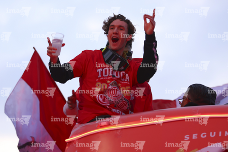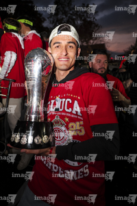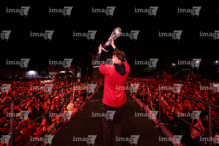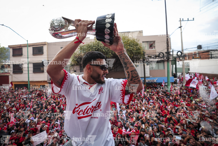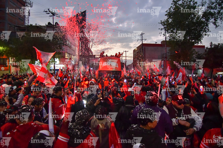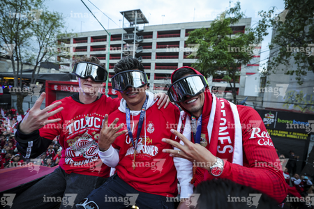 Toluca, Estado de México, 15 de diciembre de 2025. , durante el desfile por el bicampeonato de los Diablos Rojos del Toluca en el torneo Apertura 2025 de la Liga BBVA MX, realizado en la ciudad. Foto: Imago7/Jesús Esquivel