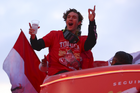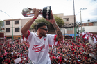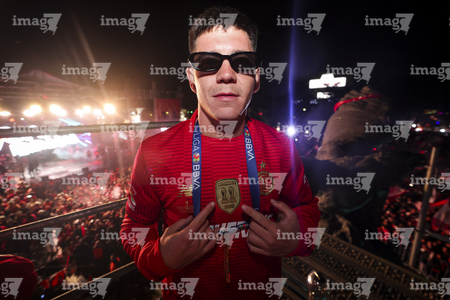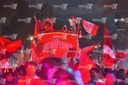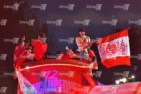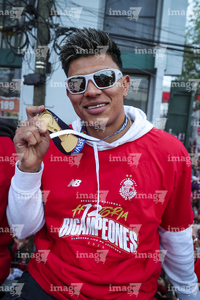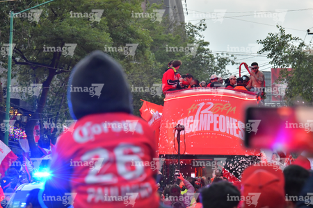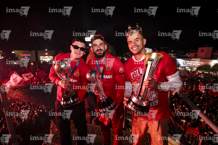 Toluca, Estado de México, 15 de diciembre de 2025. , durante el desfile por el bicampeonato de los Diablos Rojos del Toluca en el torneo Apertura 2025 de la Liga BBVA MX, realizado en la ciudad. Foto: Imago7/