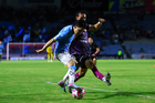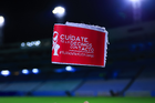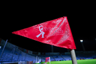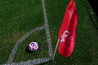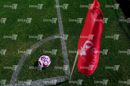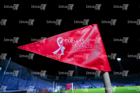 Tampico Madero, Tamaulipas, 15 de octubre del 2025. Banderín de tiro de esquina de la Campaña Rosa para la concientización del Cáncer de Mama, durante el partido correspondiente a la jornada 10 del torneo Apertura 2025 de la Liga BBVA Expansión MX, entre la Jaiba Brava del Tampico Madero y los Mineros de Zacatecas, realizado en el estadio Tamaulipas. Foto: Imago7/ Richard Vogel