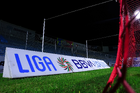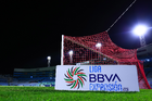 Tampico Madero, Tamaulipas, 15 de octubre del 2025. Red de portería de la Campaña Rosa para la concientización del Cáncer de Mama, durante el partido correspondiente a la jornada 10 del torneo Apertura 2025 de la Liga BBVA Expansión MX, entre la Jaiba Brava del Tampico Madero y los Mineros de Zacatecas, realizado en el estadio Tamaulipas. Foto: Imago7/ Richard Vogel