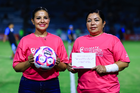 Tampico Madero, Tamaulipas, 15 de octubre del 2025. Embajadoras de la Campaña Rosa para la concientización del Cáncer de Mama, durante el partido correspondiente a la jornada 10 del torneo Apertura 2025 de la Liga BBVA Expansión MX, entre la Jaiba Brava del Tampico Madero y los Mineros de Zacatecas, realizado en el estadio Tamaulipas. Foto: Imago7/ Richard Vogel
