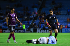 Tampico Madero, Tamaulipas, 15 de octubre del 2025. Gafete de capitán de la Campaña Rosa para la concientización del Cáncer de Mama, durante el partido correspondiente a la jornada 10 del torneo Apertura 2025 de la Liga BBVA Expansión MX, entre la Jaiba Brava del Tampico Madero y los Mineros de Zacatecas, realizado en el estadio Tamaulipas. Foto: Imago7/ Richard Vogel