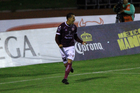 Zacatecas, Zacatecas, 11 de octubre de 2025. Luis Razo anota gol, durante el partido correspondiente a la jornada 11 del torneo Apertura 2025 de la Liga BBVA Expansión MX, entre los Mineros de Zacatecas y los Leones Negros de la UDG, realizado en el estadio Carlos Vega Villalba. Foto: Imago7/ Raúl Martínez