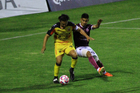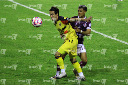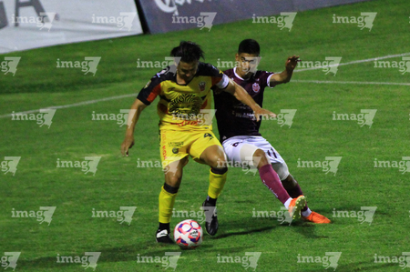 Zacatecas, Zacatecas, 11 de octubre de 2025. Arturo Ledesma y Jesús López, durante el partido correspondiente a la jornada 11 del torneo Apertura 2025 de la Liga BBVA Expansión MX, entre los Mineros de Zacatecas y los Leones Negros de la UDG, realizado en el estadio Carlos Vega Villalba. Foto: Imago7/ Raúl Martínez