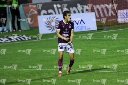 Zacatecas, Zacatecas, 11 de octubre de 2025. Sergio De Los Ríos en festejo de gol, durante el partido correspondiente a la jornada 11 del torneo Apertura 2025 de la Liga BBVA Expansión MX, entre los Mineros de Zacatecas y los Leones Negros de la UDG, realizado en el estadio Carlos Vega Villalba. Foto: Imago7/ Raúl Martínez
