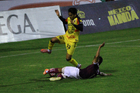 Zacatecas, Zacatecas, 11 de octubre de 2025. Carlos Fierro y Diego Marmolejo, durante el partido correspondiente a la jornada 11 del torneo Apertura 2025 de la Liga BBVA Expansión MX, entre los Mineros de Zacatecas y los Leones Negros de la UDG, realizado en el estadio Carlos Vega Villalba. Foto: Imago7/ Raúl Martínez