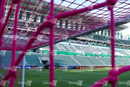Zacatepec, Morelos, 18 de octubre de 2025. Red de portería de la Campaña Rosa para la concientización del Cáncer de Mama, durante el partido correspondiente a la jornada 12 del torneo Apertura 2025 de la Liga BBVA Expansión MX, entre los Potros de Hierro del Atlante FC y los Venados de Merida, realizado en el estadio Agustín Coruco Díaz. Foto: Imago7/ Daniel Sydney