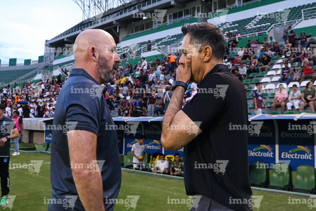 Zacatepec, Morelos, 18 de octubre de 2025. Ignacio Castro, director técnico y Miguel Fuentes, director técnico, durante el partido correspondiente a la jornada 12 del torneo Apertura 2025 de la Liga BBVA Expansión MX, entre los Potros de Hierro del Atlante FC y los Venados de Merida, realizado en el estadio Agustín Coruco Díaz. Foto: Imago7/ Daniel Sydney