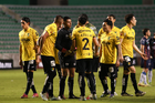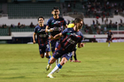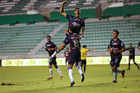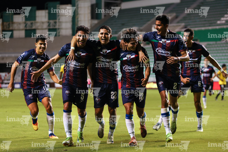 Zacatepec, Morelos, 18 de octubre de 2025. Jugadores del Atlante en festejo de gol, durante el partido correspondiente a la jornada 12 del torneo Apertura 2025 de la Liga BBVA Expansión MX, entre los Potros de Hierro del Atlante FC y los Venados de Merida, realizado en el estadio Agustín Coruco Díaz. Foto: Imago7/ Daniel Sydney