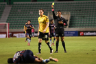 Zacatepec, Morelos, 18 de octubre de 2025. Fernando Alexander Cruz Garatachea saca tarjeta amarilla de amonestación, durante el partido correspondiente a la jornada 12 del torneo Apertura 2025 de la Liga BBVA Expansión MX, entre los Potros de Hierro del Atlante FC y los Venados de Merida, realizado en el estadio Agustín Coruco Díaz. Foto: Imago7/ Daniel Sydney