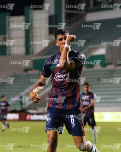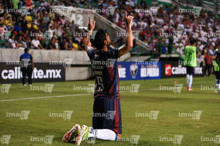 Zacatepec, Morelos, 18 de octubre de 2025. Juan Carrera en festejo de gol, durante el partido correspondiente a la jornada 12 del torneo Apertura 2025 de la Liga BBVA Expansión MX, entre los Potros de Hierro del Atlante FC y los Venados de Merida, realizado en el estadio Agustín Coruco Díaz. Foto: Imago7/ Daniel Sydney