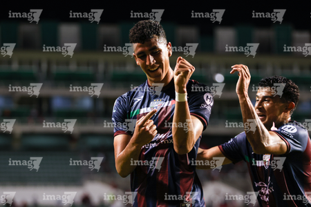 Zacatepec, Morelos, 18 de octubre de 2025. Hardy Meza en festejo de gol, durante el partido correspondiente a la jornada 12 del torneo Apertura 2025 de la Liga BBVA Expansión MX, entre los Potros de Hierro del Atlante FC y los Venados de Merida, realizado en el estadio Agustín Coruco Díaz. Foto: Imago7/ Daniel Sydney