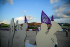Mazatlán, Sinaloa, 3 de octubre de 2025. Bandera de Mazatlán FC, durante el partido correspondiente a la jornada 12 del torneo Apertura 2025 de la Liga BBVA MX, entre los Cañoneros del Mazatlán FC y el Atlético San Luis, realizado en El Encanto. Foto: Imago7/ Alexis Chávez