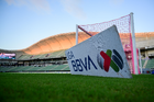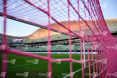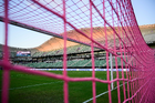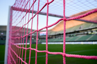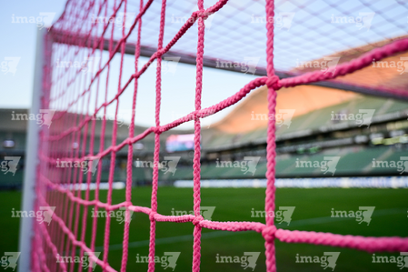 Mazatlán, Sinaloa, 3 de octubre de 2025. Red de portería de la Campaña Rosa para la concientización del Cáncer de Mama, durante el partido correspondiente a la jornada 12 del torneo Apertura 2025 de la Liga BBVA MX, entre los Cañoneros del Mazatlán FC y el Atlético San Luis, realizado en El Encanto. Foto: Imago7/ Alexis Chávez