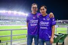 Mazatlán, Sinaloa, 3 de octubre de 2025. Afición en festejo, durante el partido correspondiente a la jornada 12 del torneo Apertura 2025 de la Liga BBVA MX, entre los Cañoneros del Mazatlán FC y el Atlético San Luis, realizado en El Encanto. Foto: Imago7/ Alexis Chávez