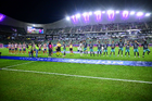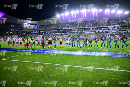 Mazatlán, Sinaloa, 3 de octubre de 2025. Protocolo, durante el partido correspondiente a la jornada 12 del torneo Apertura 2025 de la Liga BBVA MX, entre los Cañoneros del Mazatlán FC y el Atlético San Luis, realizado en El Encanto. Foto: Imago7/ Alexis Chávez