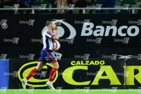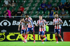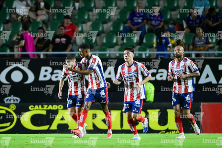 Mazatlán, Sinaloa, 3 de octubre de 2025. Jugadores de Atlético San Luis en festejo de gol, durante el partido correspondiente a la jornada 12 del torneo Apertura 2025 de la Liga BBVA MX, entre los Cañoneros del Mazatlán FC y el Atlético San Luis, realizado en El Encanto. Foto: Imago7/ Alexis Chávez