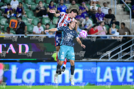 Mazatlán, Sinaloa, 3 de octubre de 2025. Román Torres y Mauro Zaleta, durante el partido correspondiente a la jornada 12 del torneo Apertura 2025 de la Liga BBVA MX, entre los Cañoneros del Mazatlán FC y el Atlético San Luis, realizado en El Encanto. Foto: Imago7/ Alexis Chávez