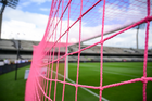 Ciudad de México, 5 de octubre de 2025. Red de portería de la Campaña Rosa para la concientización del Cáncer de Mama, durante el partido correspondiente a la jornada 12 del torneo Apertura 2025 de la Liga BBVA MX, entre los Pumas de la UNAM y las Chivas Rayadas del Guadalajara, realizado en el estadio Olímpico Universitario. Foto: Imago7/ Alexis Chavez