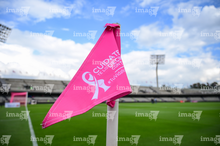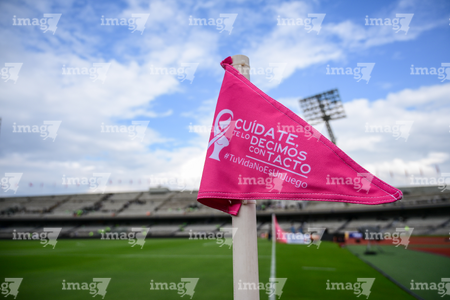 Ciudad de México, 5 de octubre de 2025. Banderín de tiro de esquina de la Campaña Rosa para la concientización del Cáncer de Mama, durante el partido correspondiente a la jornada 12 del torneo Apertura 2025 de la Liga BBVA MX, entre los Pumas de la UNAM y las Chivas Rayadas del Guadalajara, realizado en el estadio Olímpico Universitario. Foto: Imago7/ Alexis Chavez