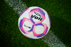 Ciudad de México, 5 de octubre de 2025. Balón de futbol Voit Aereus por la Campaña Rosa contra el cáncer de mama, durante el partido correspondiente a la jornada 12 del torneo Apertura 2025 de la Liga BBVA MX, entre los Pumas de la UNAM y las Chivas Rayadas del Guadalajara, realizado en el estadio Olímpico Universitario. Foto: Imago7/ Diego Padilla