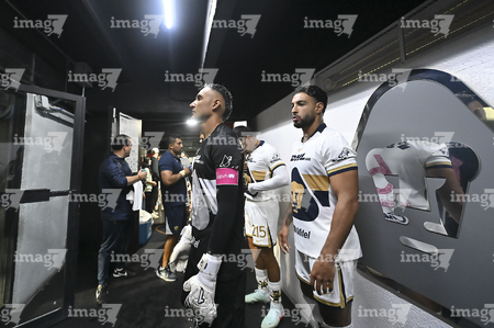 Ciudad de México, 5 de octubre de 2025. Jugadores de Pumas , durante el partido correspondiente a la jornada 12 del torneo Apertura 2025 de la Liga BBVA MX, entre los Pumas de la UNAM y las Chivas Rayadas del Guadalajara, realizado en el estadio Olímpico Universitario. Foto: Imago7/ Diego Padilla