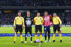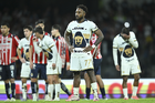 Ciudad de México, 5 de octubre de 2025. Jugadores de Chivas, durante el partido correspondiente a la jornada 12 del torneo Apertura 2025 de la Liga BBVA MX, entre los Pumas de la UNAM y las Chivas Rayadas del Guadalajara, realizado en el estadio Olímpico Universitario. Foto: Imago7/ Diego Padilla