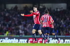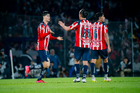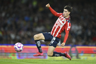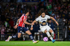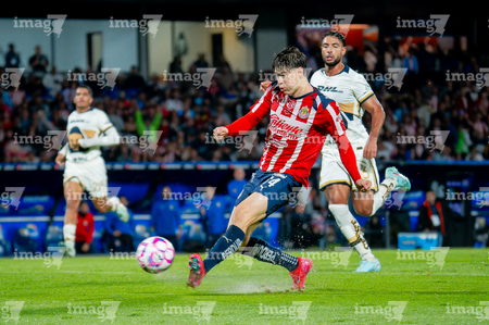 Ciudad de México, 5 de octubre de 2025. Armando González anota gol, durante el partido correspondiente a la jornada 12 del torneo Apertura 2025 de la Liga BBVA MX, entre los Pumas de la UNAM y las Chivas Rayadas del Guadalajara, realizado en el estadio Olímpico Universitario. Foto: Imago7/ Diego Padilla