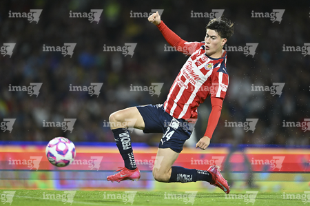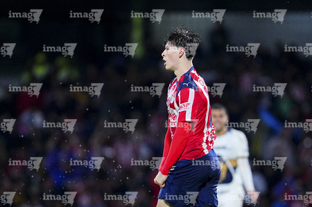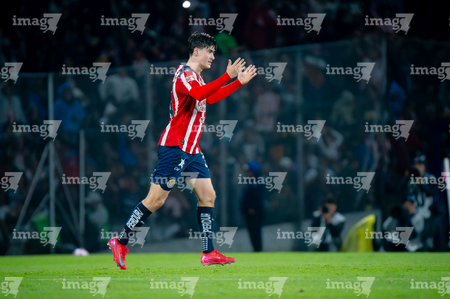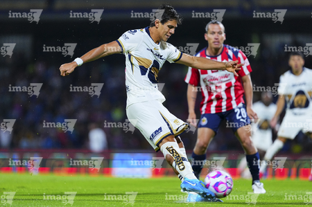 Ciudad de México, 5 de octubre de 2025. José Juan Macías, durante el partido correspondiente a la jornada 12 del torneo Apertura 2025 de la Liga BBVA MX, entre los Pumas de la UNAM y las Chivas Rayadas del Guadalajara, realizado en el estadio Olímpico Universitario. Foto: Imago7/ Manlio Contreras