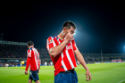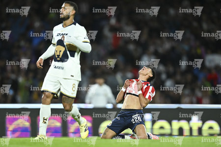 Ciudad de México, 5 de octubre de 2025. Armando González en lamento, durante el partido correspondiente a la jornada 12 del torneo Apertura 2025 de la Liga BBVA MX, entre los Pumas de la UNAM y las Chivas Rayadas del Guadalajara, realizado en el estadio Olímpico Universitario. Foto: Imago7/ Alexis Chavez