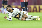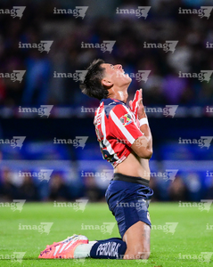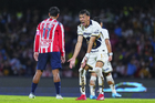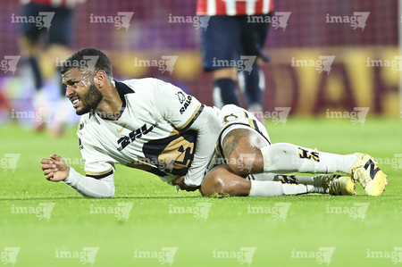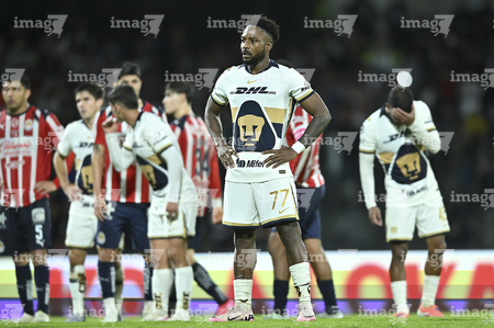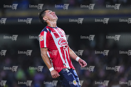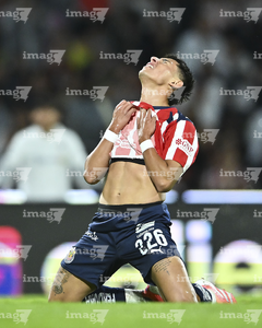 Ciudad de México, 5 de octubre de 2025. Alvaro Angulo en lamento, durante el partido correspondiente a la jornada 12 del torneo Apertura 2025 de la Liga BBVA MX, entre los Pumas de la UNAM y las Chivas Rayadas del Guadalajara, realizado en el estadio Olímpico Universitario. Foto: Imago7/ Diego Padilla